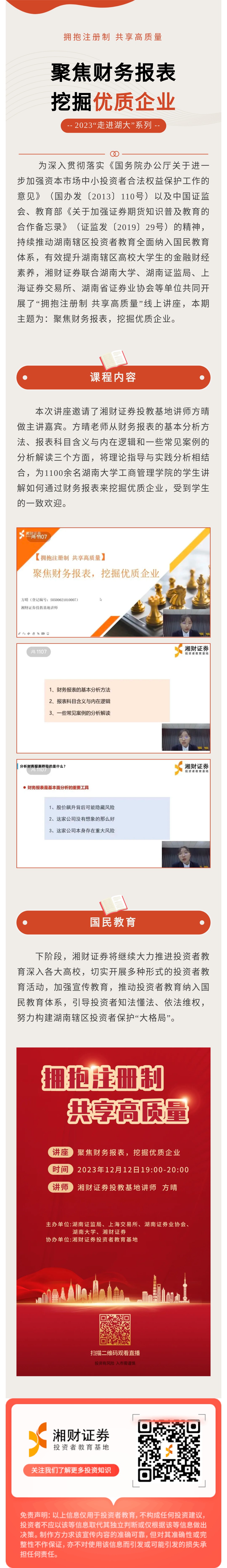 【国民教育|全面注册制】湖南大学“拥抱注册制,共享高质量”线上讲座顺利举办