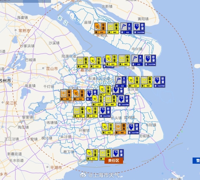 上海今晨气温创下半年新低:市区最低温不足-3℃ 郊区-6℃到-4℃