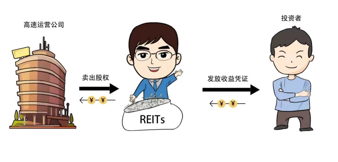 一方面,REITs向投资者募集资金,并发放给其一个收益凭证。投资者可以凭借此,定期享受高速公路的分红收益。另一方面,REITs将募集而来的资金,用来购买高速运营公司的全部股权,进而取得对高速公路的经营权。高速运营公司则获得了一笔当期的现金流,就可以开工改造高速公路了。