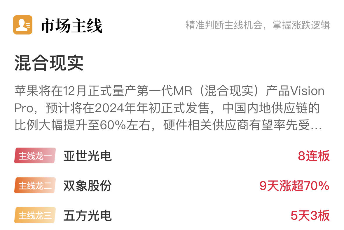 市场主线:MR概念带动消费电子板块集体爆发 市场呈现良性轮动态势