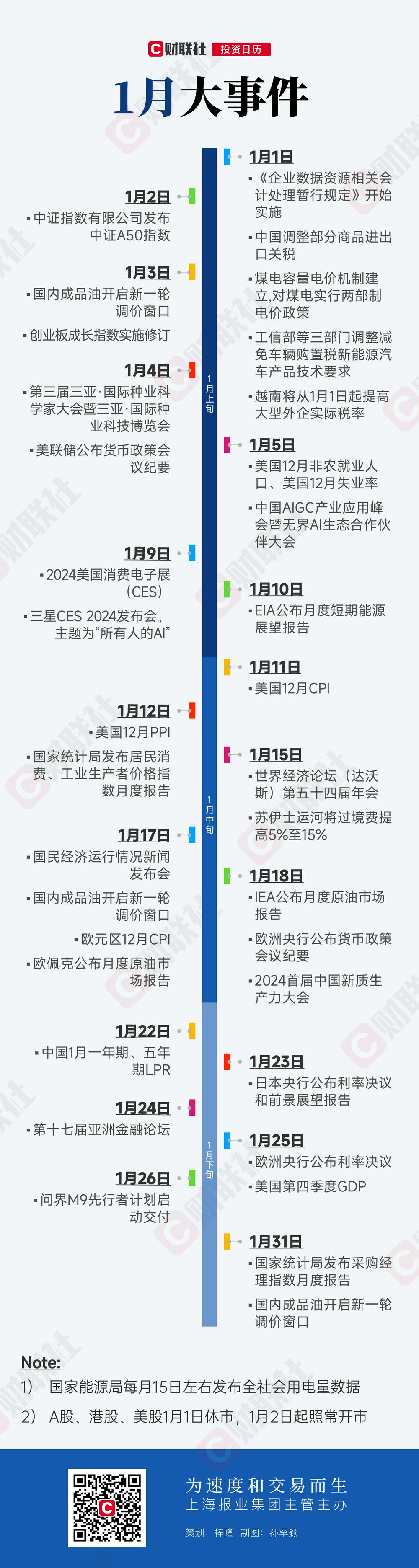 投资日历:1月资本市场大事提醒