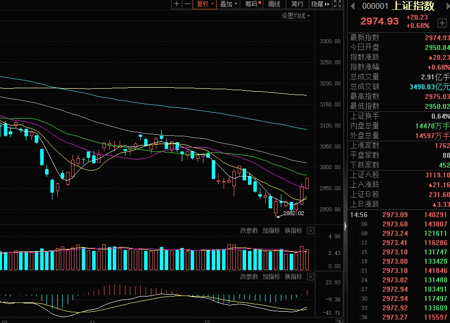 三大股指小幅低开后继续维持强势震荡,昨日大涨的光伏等新能源赛道盘中分化,而混合现实概念盘中加速拉升,再度激活整个消费电子产业链。午后华为鸿蒙再度发力,加上消费电子方向继续维持强势。尾盘兴业银行竞价直线涨停。今年A股主要股指大多数收跌,其中沪指全年下跌3.7%,收在3000点下方。创业板指全年下跌19.41%,跌幅居首,上证50、沪深300指数年线3连阴。北证50指数四季度大幅走高,全年上涨14.92%。沪深两市全年总成交额达211.6万亿,同比去年下降5.48%,总成交额连续三年减少。