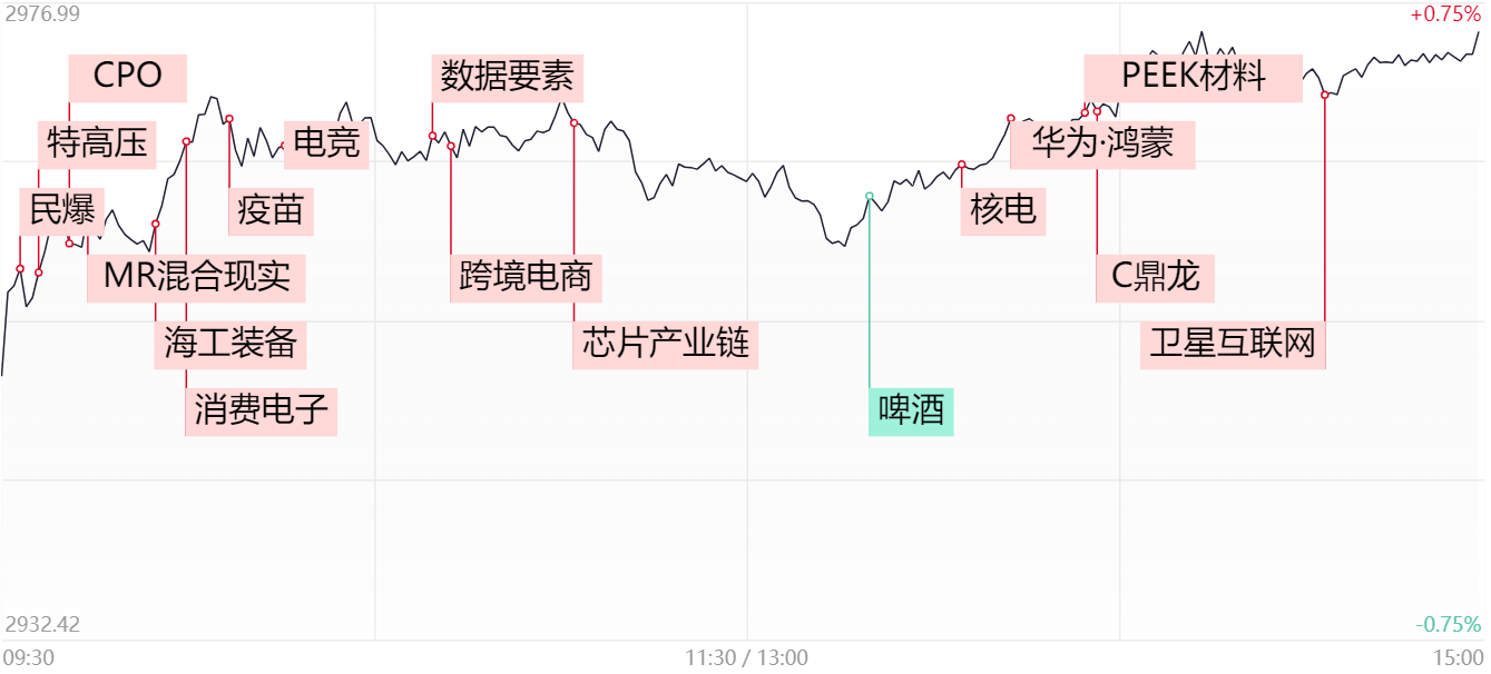 上个交易日,三大股指小幅低开后继续维持强势震荡,混合现实概念盘中爆发,激活整个消费电子产业链,尾盘兴业银行竞价直线涨停,三大股指全线收高。1)混合现实概念继续站上风口,亚世光电、五方光电、力鼎光电、易天股份、道明光学、联建光电等大批成分股涨停。消息面上,天风国际分析师郭明錤最新表示,2024年VisionPro出货预估约50万部。目前VisionPro已量产,预计在2024年1月首周开始大量出货。2)光伏板块大批成分股实现连板晋级,清源股份、闽发铝业、海源复材、赛伍技术、金辰股份、雅博股份等多股涨停。板块中大市值权重个股已经显现疲态,但受益海外大储放量的跟踪支架、辅材等细分方向的小市值品种仍彰显出高弹性。3)鸿蒙概念盘中表现不俗,智微智能、智度股份涨停,九联科技、软通动力涨超10%,传智教育、芯海科技、润和软件等涨幅靠前。据媒体报道,记者从华为内部人士处了解到,除手机鸿蒙之外,PC端的鸿蒙操作系统已经接近完成。4)汽车产业链近期维持局部活跃,瑞玛精密、华锋股份、新坐标、凌云股份涨停,北特科技、继峰股份、赛力斯等涨幅靠前。近期在问界M9发布后,小米也举行了汽车技术发布会,后续有关一体化压铸、激光雷达等先进赛道的相关供应商仍具备较大受益空间。