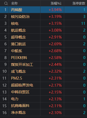 财联社1月2日电,市场早盘震荡调整,创业板指领跌。指数黄白分时线走势分化,题材股表现活跃。盘面上,核电股开盘大涨,南方路机、尚纬股份、合锻智能涨停,受此带动核污染防治概念股盘中走强,捷强装备20CM涨停,航天晨光、中晟高科涨停。航运股再度拉升,宁波远洋、兴通股份涨停。电力股盘中活跃,西昌电力涨停。下跌方面,芯片股陷入调整,佰维存储接近跌停。总体上个股涨多跌少,全市场超3200只个股上涨。沪深两市今日成交额5041亿,较上个交易日缩量80亿。板块方面,核污染防治、航运、PEEK材料、电力等板块涨幅居前,存储芯片、BC电池、半导体、数据要素等板块跌幅居前。截至收盘,沪指跌0.21%,深成指跌0.91%,创业板指跌1.38%。北向资金方面,沪股通早盘净流出6.45亿,深股通早盘净流出29.82亿。