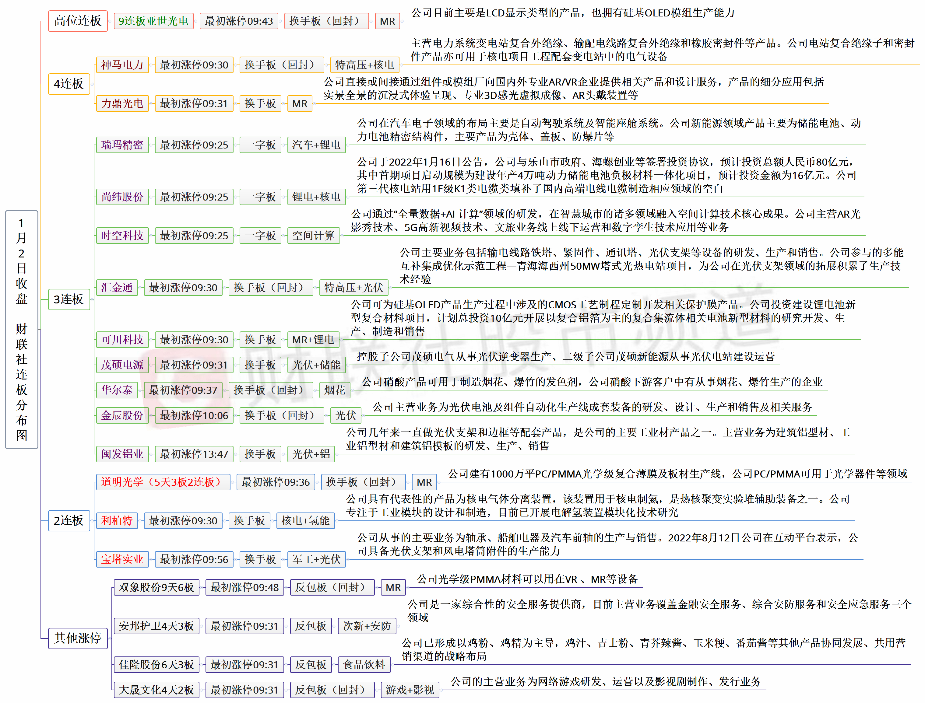 今日共56股涨停,连板股总数15只,其中三连板及以上个股12只,上一交易日共22只连板股,连板股晋级率54.54%(不含ST股、退市股及未开板新股)。个股方面,个股表现与指数相背离,短线情绪依旧活跃,亚世光电再度涨停晋级9连板,连板股2进3成功率高达64.28(9/14)。北交所个股继续走强,北证50指数涨超2%,逼近历史高点,共4股录得30CM涨停。板块方面,核电板块受日本核泄漏、国常会核准核电项目以及可控核聚变创新联合体成立三重消息刺激,全天保持强势,北交所常辅股份30CM一字涨停,神马电力4连板、尚纬股份3连板;光伏板块大幅分化,多只小市值个股实现连板晋级,汇金通、茂硕电源、金辰股份、闽发铝业4连板,但权重表现不佳,隆基绿能跌超3%,反弹先锋德业股份跌超5%。