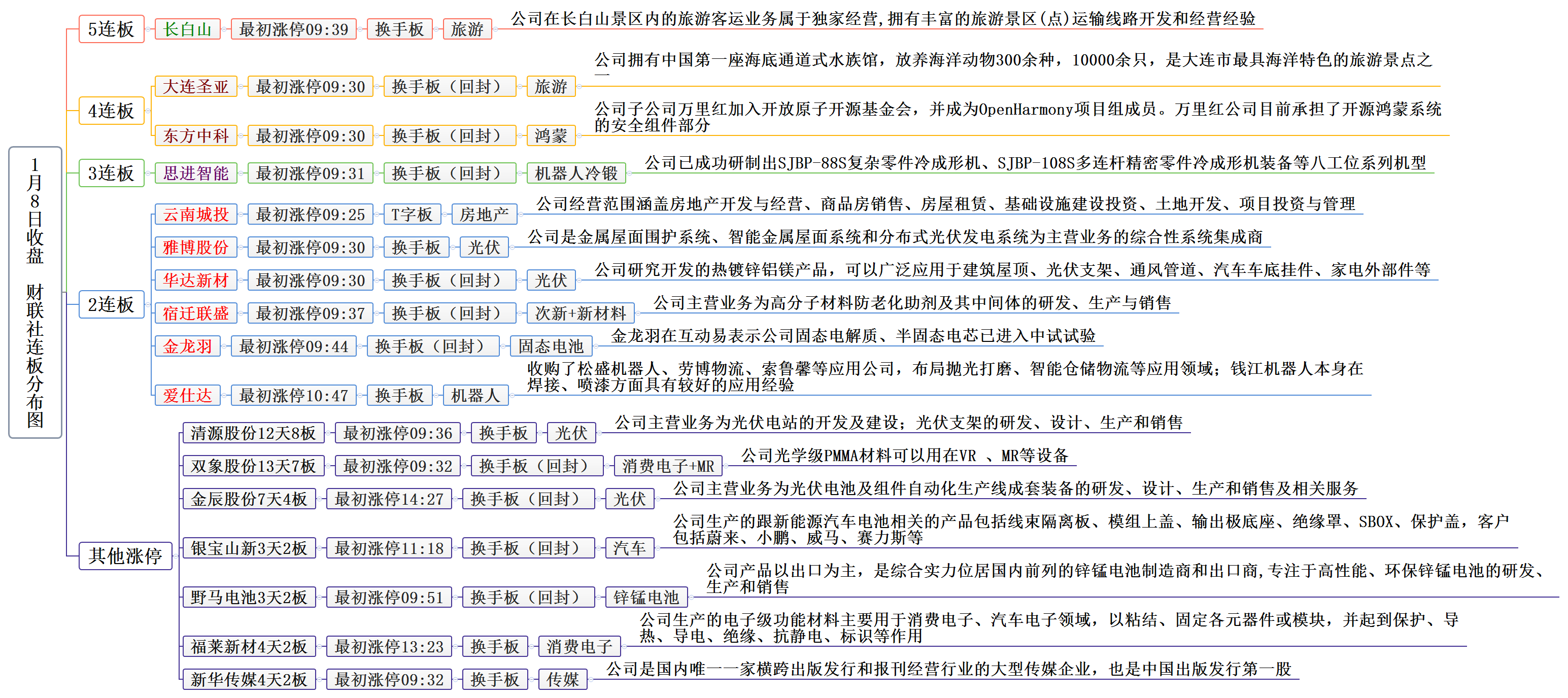 今日共33股涨停,连板股总数10只,其中三连板及以上个股4只,上一交易日共8只连板股,连板股晋级率50%(不含ST股、退市股及未开板新股)。个股方面,短线情绪有所回暖,昨日高度板长白山缩量换手涨停实现5连板,昨日3只3板除日久光电掉队跌停外,都顺利晋级4板,前期题材龙头纷纷反抽,清源股份、双象股份涨停,亚世光电盘中涨超9%。板块方面,冰雪产业概念龙头长白山、大连圣亚双双涨停,提升了市场风偏;机器人概念股思进智能6天4板3连板,爱仕达2板;光伏板块雅博股份缩量2连板,带动前光伏龙头清源股份走出缩量新高板;市场指数持续低迷,全市场超4800只个股下跌,但情绪可能已先走出拐点。沪深两市今日成交额6576亿,较上个交易日缩量787亿。