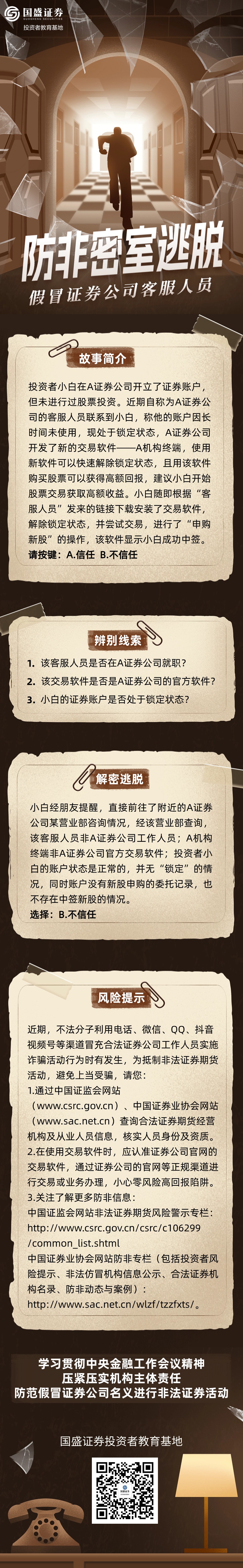 “防范假冒证券公司名义实施诈骗活动”专题宣传月 |【防非密室逃脱】(一)假冒证券公司客服人员