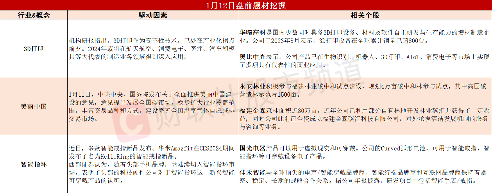 ①下游覆盖“人形机器人+飞行汽车”,3D打印技术已处在产业化拐点。②国家全面推进美丽中国建设,碳市场迎巨大发展机遇。③头部科技硬件公司陆续布局,这一消费电子细分有望迎来放量元年。