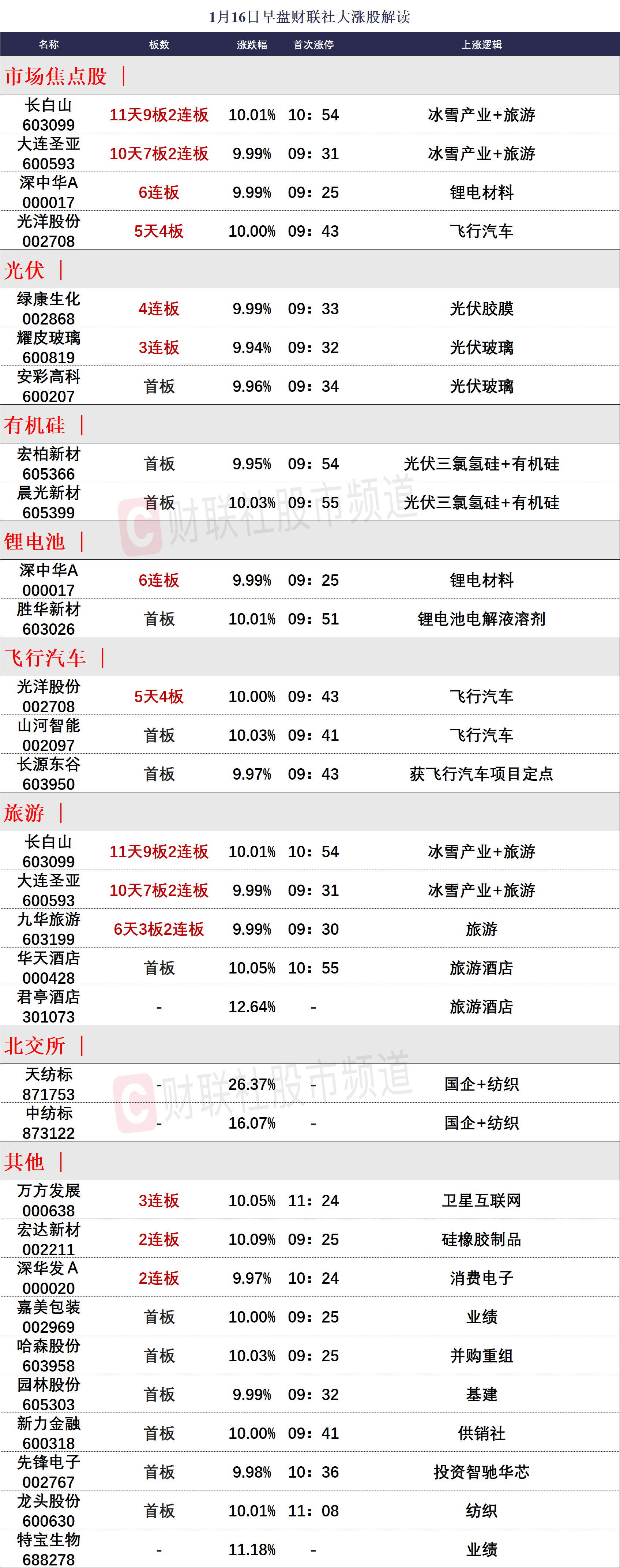1月16日午间涨停分析
