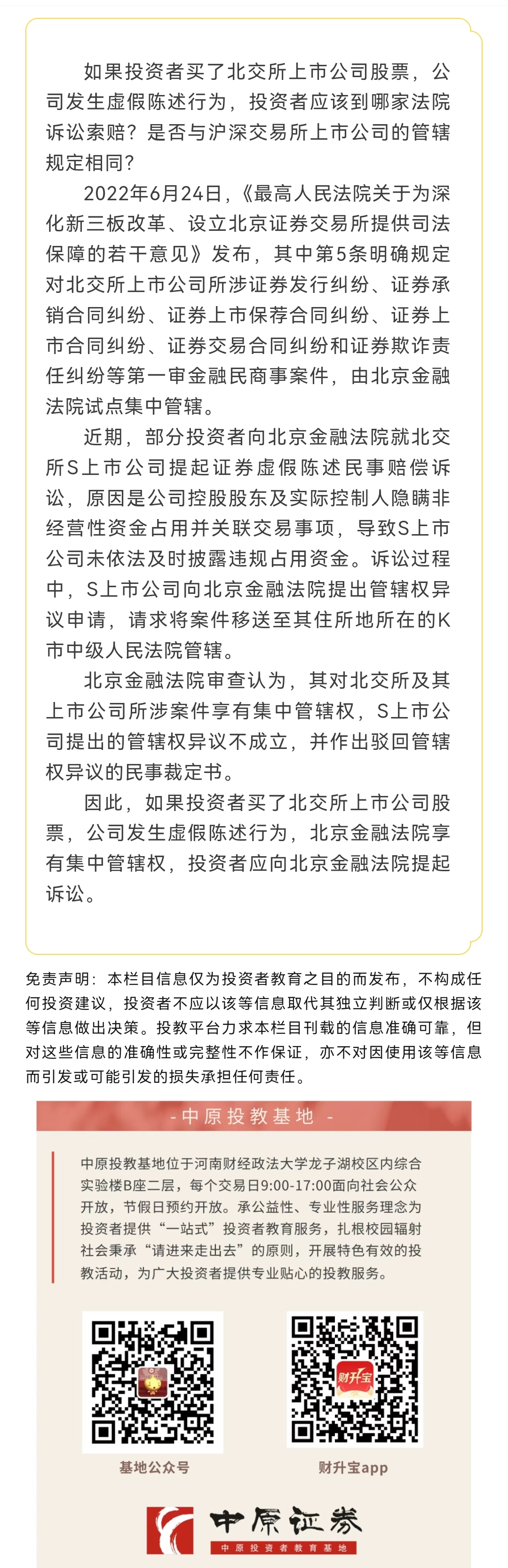 权益360 | 北交所市场投资者诉讼维权要去哪家法院?