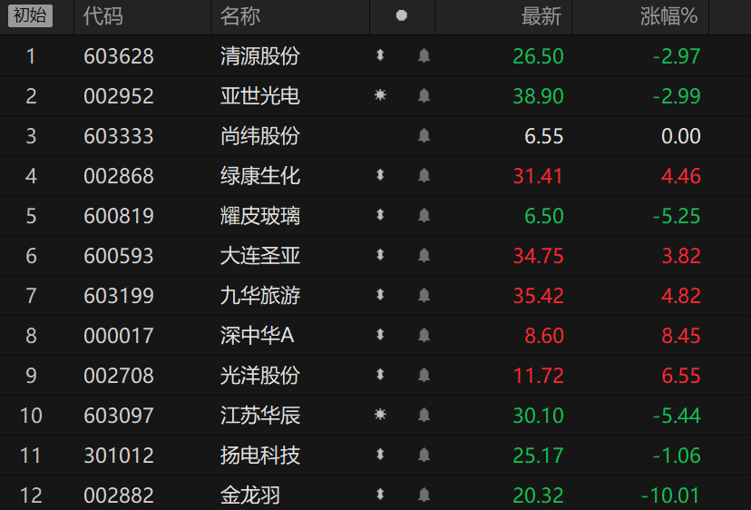 财联社1月17日电,市场焦点股清源股份(18天11板)低开2.97%,MR概念股亚世光电(19天10板)低开2.99%,光伏股尚纬股份(13天8板)平开、绿康生化(4板)高开4.46%、耀皮玻璃(3板)低开5.25%,旅游板块大连圣亚(10天7板)高开3.82%、九华旅游(6天3板)高开4.82%,锂电池板块深中华A(6板)高开8.45%,飞行汽车概念股光洋股份(5天4板)高开6.55%,智能电网板块江苏华辰(3板)低开5.44%、扬电科技(创业板首板)低开1.06%,固态电池概念股金龙羽(8天5板)竞价跌停。