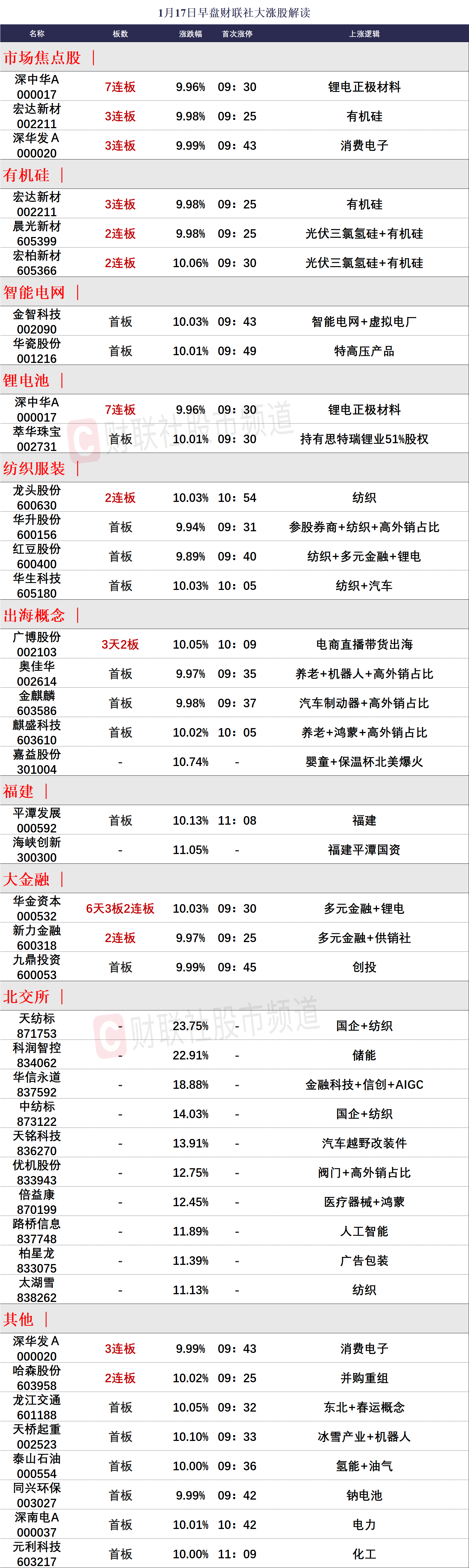 今日午盘两市共27股涨停,连板股总数9只,7股封板未遂,封板率为79%(不含ST股、退市股及未开板新股)。个股方面,“华字辈”个股深中华A7板、深华发A3板,有机硅概念股宏达新材3板、晨光新材2板、宏柏新材2板。