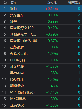 财联社1月22日电,市场早盘低开低走,深成指领跌。指数黄白分时线走势分化,权重股相对偏强。盘面上,银行等大金融股逆势走强,齐鲁银行、新力金融涨超3%,招商银行涨超2%。CPO概念股开盘冲高,特发信息涨停,新易盛、天孚通信涨超5%。新能源赛道股探底回升,宁德时代涨超2%,爱旭股份涨超4%。“华字辈”概念股继续活跃,深中华A10连板,华升股份、华瓷股份、华鼎股份涨停。下跌方面,食品、零售、旅游等消费股集体调整,安井食品跌停。总体上个股跌多涨少,全市场超4900只个股下跌。沪深两市今日成交额4161亿,较上个交易日缩量230亿。板块方面,仅银行板块上涨,零售、旅游、传媒、手机游戏等板块跌幅居前。截至收盘,沪指跌0.86%,深成指跌1.1%,创业板指跌0.54%。北向资金方面,沪股通早盘净流出7.9亿,深股通早盘净流出0.68亿。