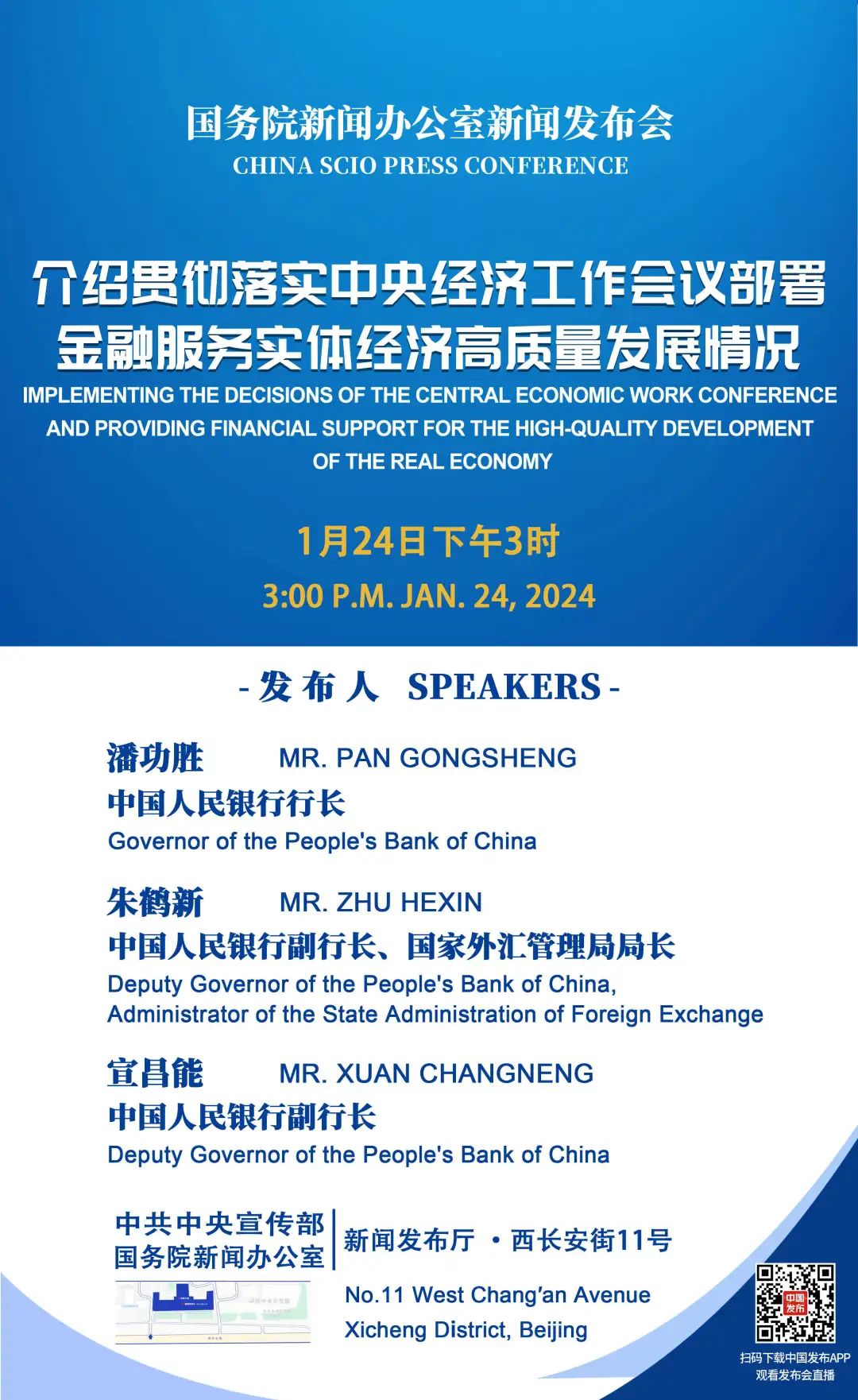 预告:国新办1月24日下午3时举行新闻发布会 潘功胜出席