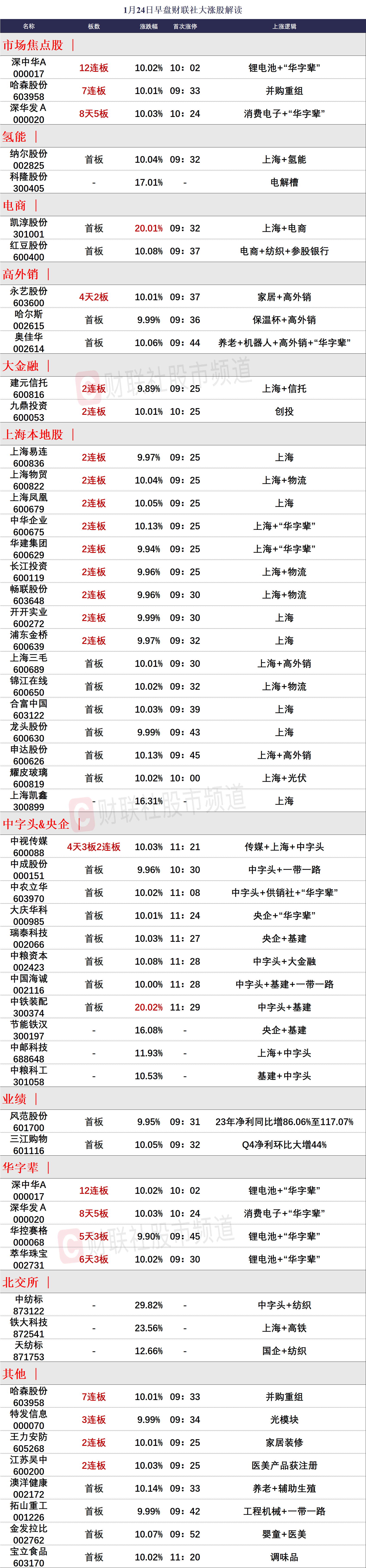 1月24日午间涨停分析