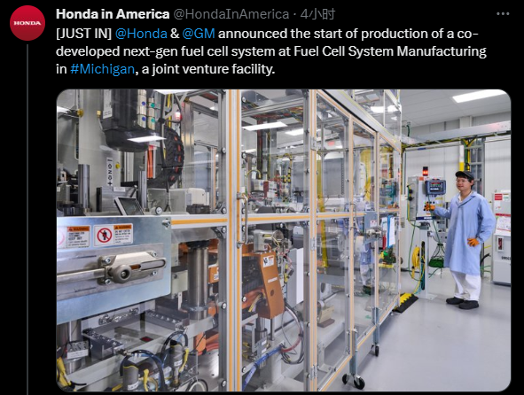 财联社1月26日讯(编辑 赵昊)当地时间周四(1月25日),本田美国在社交媒体上宣布,其与通用汽车的合资工厂“燃料电池系统制造”(FCSM)正式开始生产两家公司共同开发的新一代燃料电池。