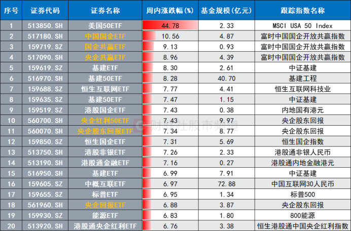 目前,地方两会正在召开,各省市陆续披露政府工作报告和产业规划政策,其中,多个省份在部署2024年重点工作时着重提到国有企业改革。受此提振,国企改革概念近日持续升温,相关基金也表现活跃。具体数据上看,截至1月25日,中国国企ETF、国企共赢ETF、央企共赢ETF周内分别上涨近10.6%、9.1%、9.0%,涨幅排行包揽所有ETF中的第二名至第四名。