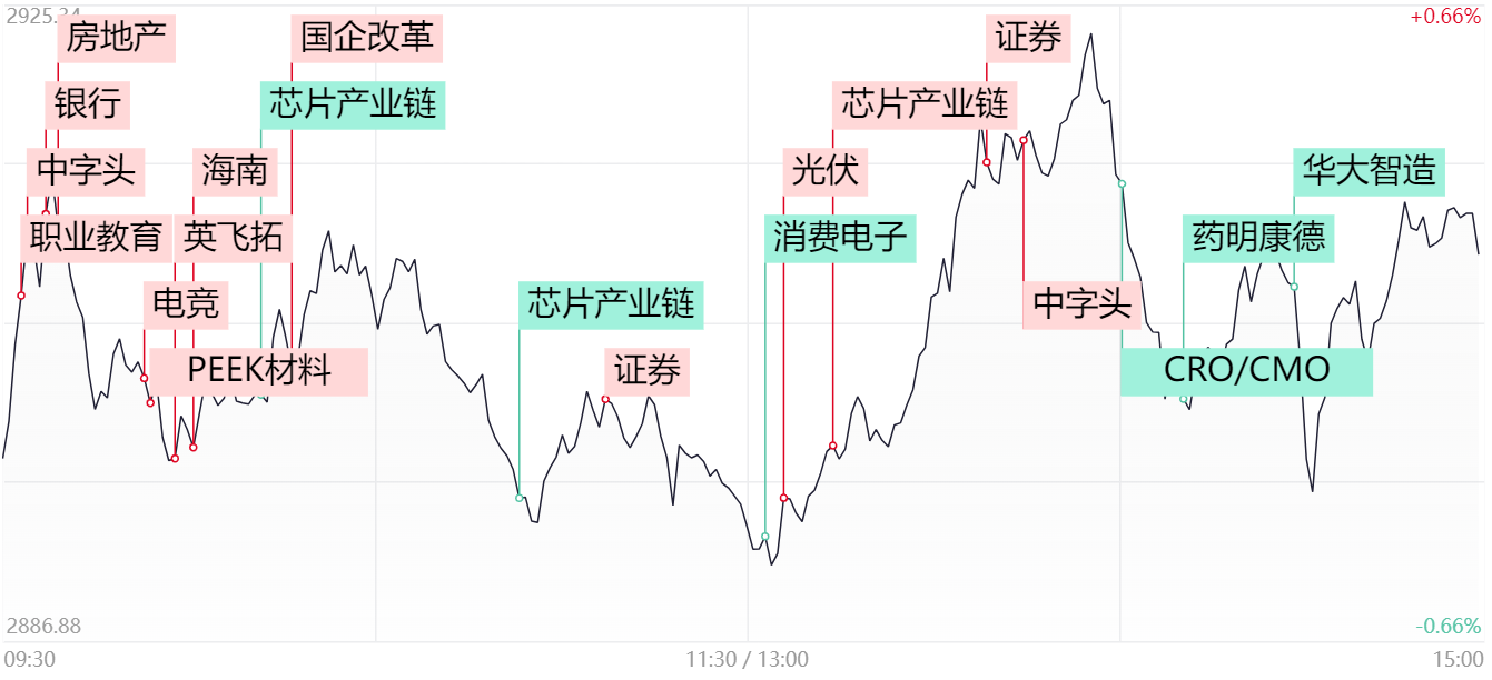 上个交易日,三大股指集体低开,中字头、大金融等权重板块强势,带动沪指冲高,沪指2900点失而复得。但半导体、光伏、CRO等赛道股低迷,拖累创业板指单边震荡走弱,尾盘跌幅扩大至2%。沪深两市成交额8287亿,缩量628亿。1)上海本地股延续凌厉势头,高标股长江投资、华建集团、中华企业、上海凤凰、浦东金桥、畅联股份等悉数走出3进4晋级,上海凯鑫20CM3连板。2)在上海本地股大面积连板晋级之际,海南、福建等地自贸区概念股亦有跟随,海南板块中海峡股份、京粮控股、海南高速、海汽集团、海南瑞泽和福建板块平潭发展涨停,海峡创新涨超10%。消息面上,海南省人大常委会副主任李军25日表示,今年海南省人大常委会将聚焦保障自贸港封关运作准备。3)中字头板块局部活跃依旧,中铁装配3连板,中国海诚、中铝国际、中成股份、中视传媒等多股涨停,中国石油、中钢国际、中国交建等涨幅靠前。1月25日,国有企业存量资产优化升级基金签约仪式在京举行。该基金由国务院国资委批准,中国国新联合中国信达、中国东方、中国长城共同发起设立,总规模400亿元。4)房地产板块强度继续提升,除去中华企业、光大嘉宝、外高桥、中交地产、光明地产等叠加上海本地股或中字头属性的连板股外,特发服务20CM涨停,沙河股份、国创高新、阳光股份、信达地产等多股涨停。近期房地产行业持续获得利好政策加持,融资端的流动性支持有利于改善房企整体现金流状况。5)大金融板块盘中也多次异动,多元金融概念中粮资本、九鼎投资、香溢融通涨停,银行股齐鲁银行涨停,重庆银行触及涨停,证券板块中华鑫股份、国投资本、锦龙股份等盘中一度大幅冲高。