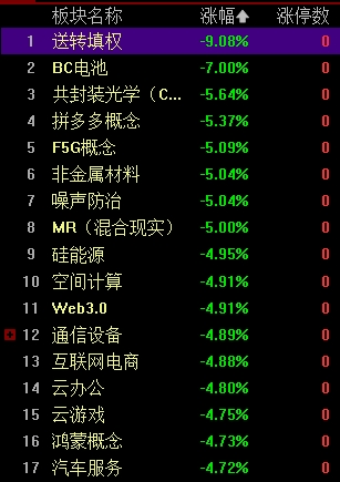 财联社1月29日电,市场全天震荡调整,创业板指跌超3%再创调整新低,沪指冲高回落失守2900点。盘面上,中字头板块延续强势,中视传媒、中国海诚、中成股份、中南股份涨停。次新股开盘活跃,腾达科技、上海汽配、永达股份、金帝股份涨停。上海本地股分化,长江投资、上海凤凰、中华企业、上海建科、光明地产涨停。银行板块相对抗跌,中信银行涨超4%,北京银行涨超2%。下跌方面,光伏、储能等新能源赛道调整,TCL中环、爱旭股份、德业股份、清源股份等跌停。CPO板块大幅杀跌,联特科技跌停,源杰科技、新易盛、太辰光、光库科技、中际旭创跌超10%。总体上个股跌多涨少,全市场超4800只个股下跌。沪深两市今日成交额8052亿,较上个交易日缩量235亿。板块方面,中字头、中船系、银行等板块上涨,CPO、BC电池、AIGC、算力租赁等板块跌幅居前。截至收盘,沪指跌0.92%,深成指跌2.06%,创业板指跌3.49%。北向资金全天净卖出5.92亿,其中沪股通净买入9.36亿元,深股通净卖出15.28亿元。