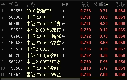 中证、国证2000相关ETF持续拉升 中证2000ETF广发(560220)触及涨停