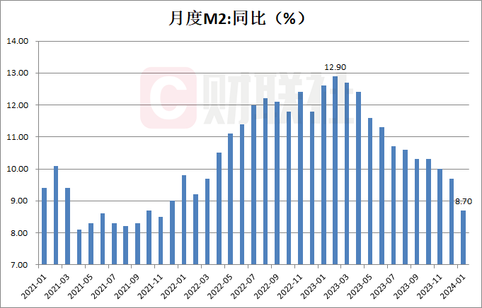 央行:1月货币供应量M2同比增长8.7%