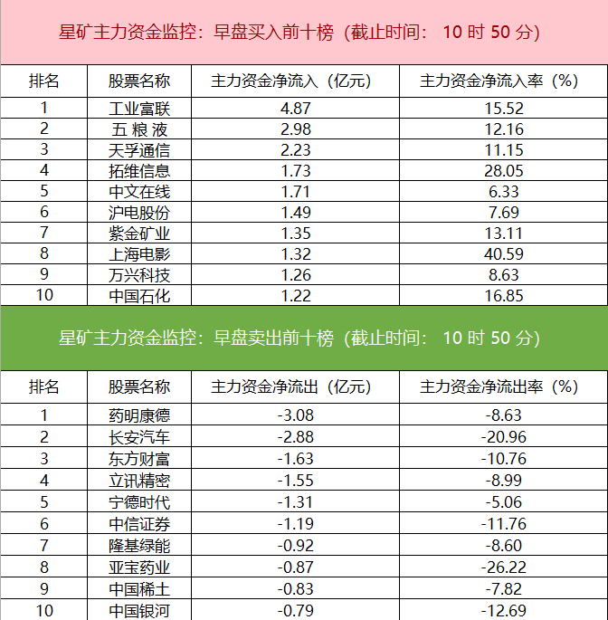 主力资金监控:工业富联净买入超4亿元