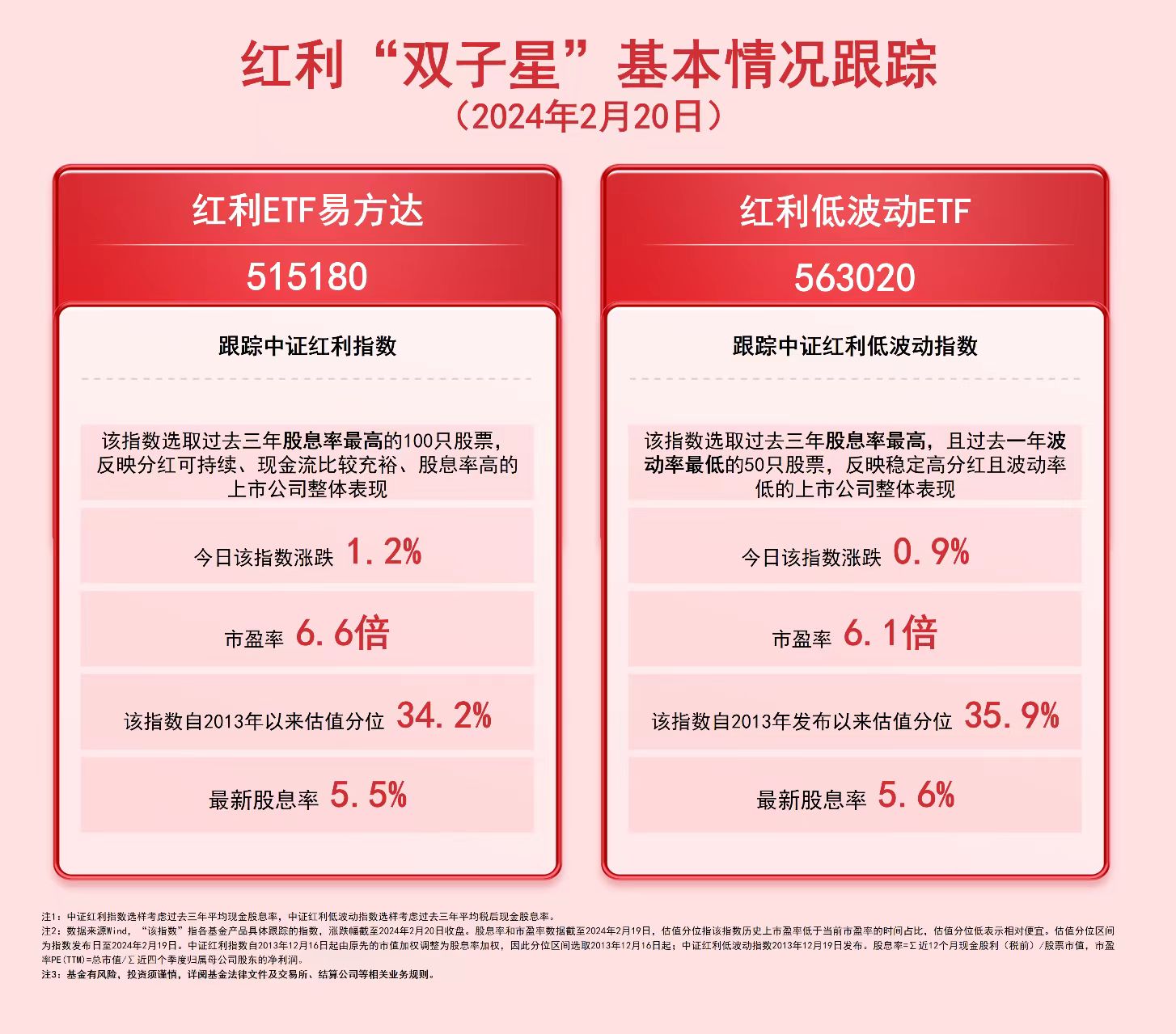 财联社2月20日电,截至今日收盘,中证红利指数上涨1.2%,中证红利低波动指数上涨0.9%。