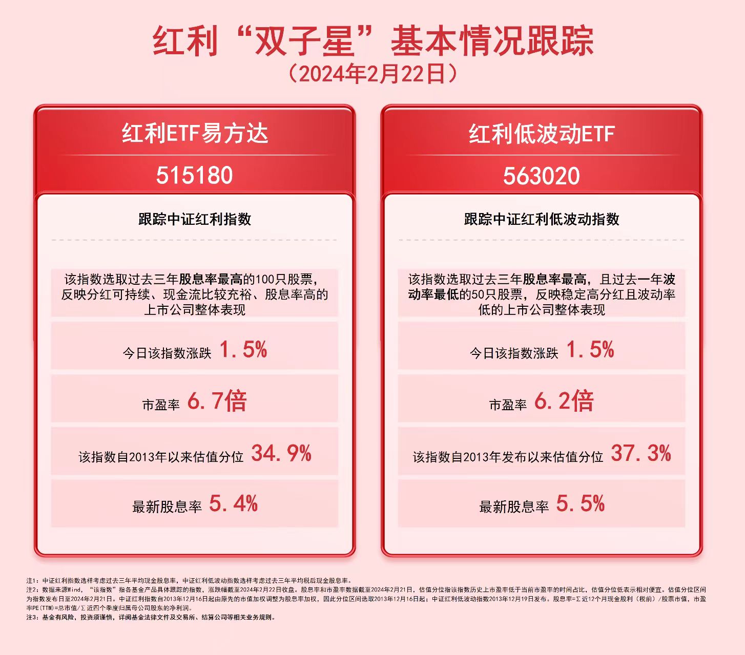 红利“双子星”均涨超1% 红利ETF易方达(515180)、红利低波动ETF(563020)等布局A股高股息资产
