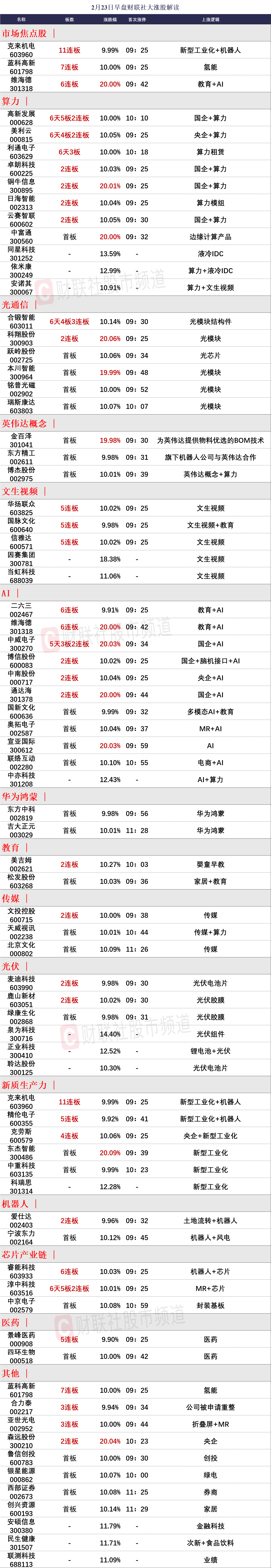 今日午盘两市共60股涨停,连板股总数32只,27股封板未遂,封板率为69%(不含ST股、退市股及未开板新股)。个股方面,新质生产力概念股克来机电11板、精伦电子5板,氢能板块蓝科高新7板,教育股维海德创业板6板、二六三6板。