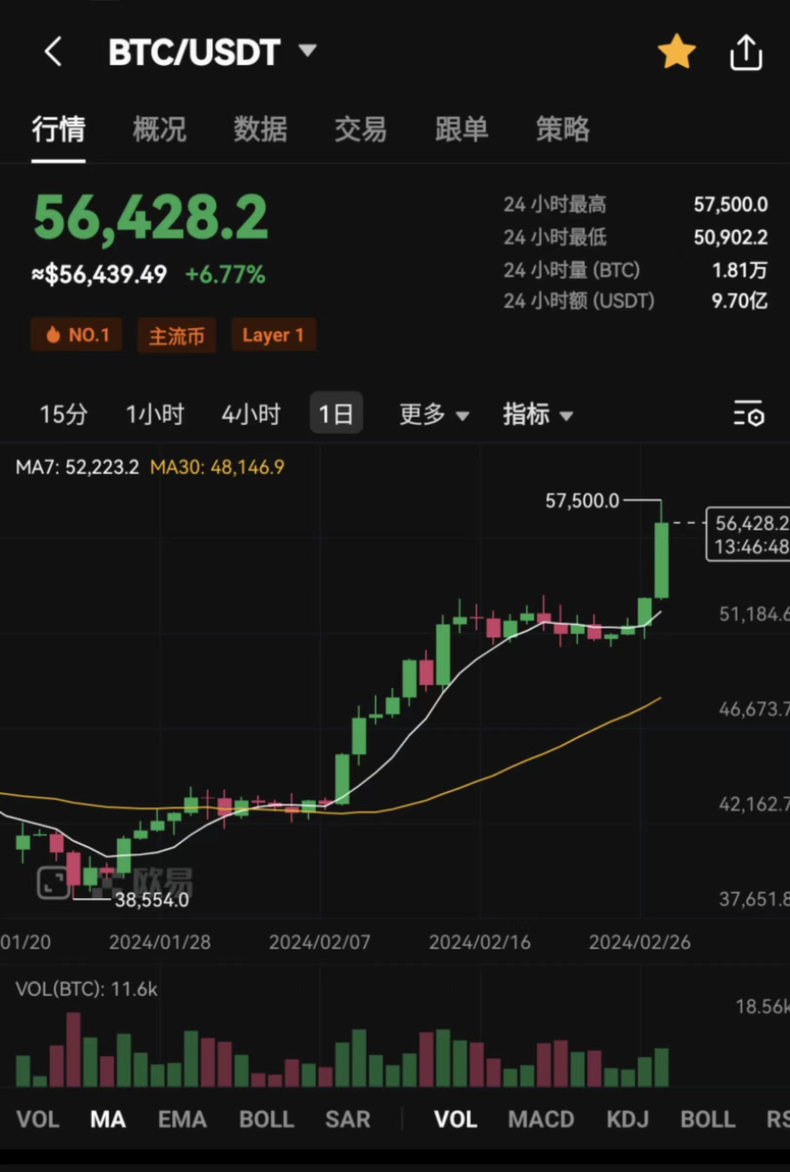 财联社2月27日电,比特币现货突破57000美元,日内涨超8%,续刷2021年12月以来新高。