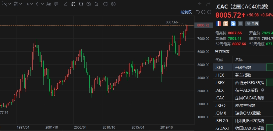 财联社3月7日电,法国CAC40指数突破8000点,再创历史新高。