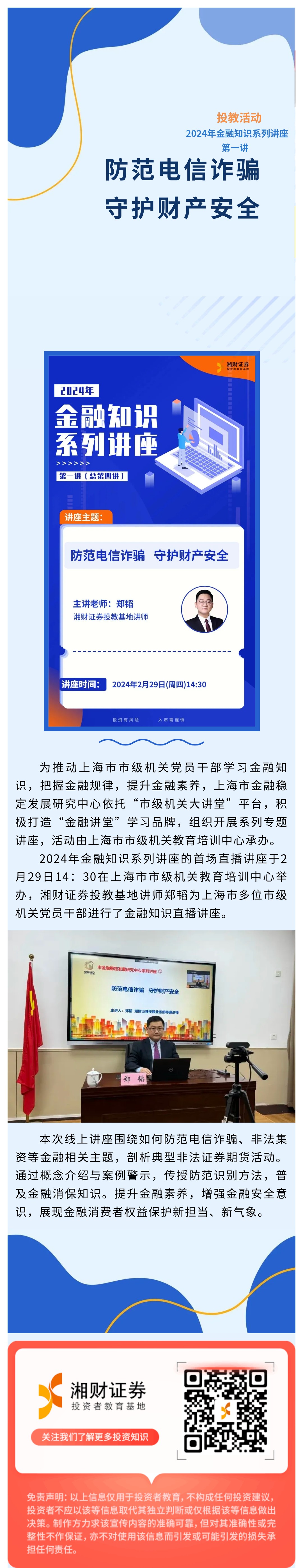 【投教活动】2024年金融知识系列讲座第一讲成功举办