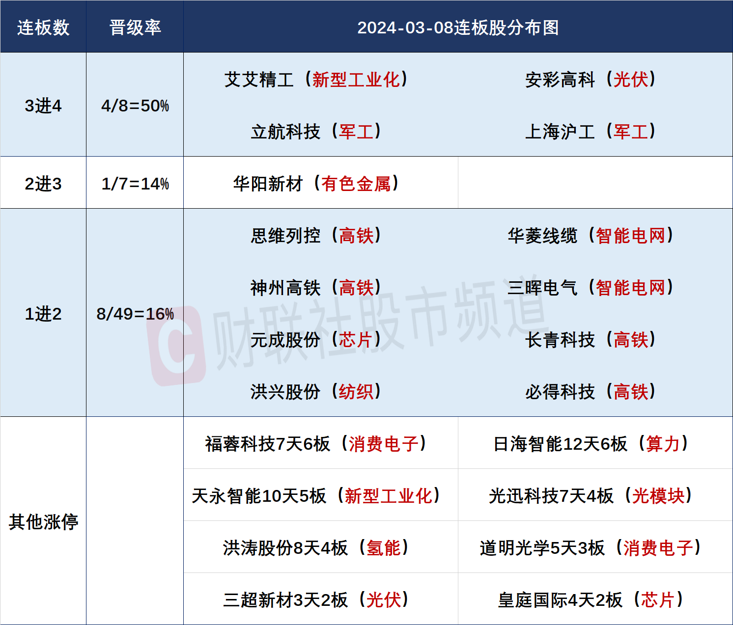 今日共63股涨停,连板股总数13只,其中三连板及以上个股5只,上一交易日共17只连板股,连板股晋级率29.41%(不含ST股、退市股及未开板新股)。个股方面,沪深两市超3500只个股上涨,但高位股继续退潮,高度板文投控股午后跌停,次高板(昨4连板)川润股份盘中大幅回落超10%,连板高度被压缩至4板。板块方面,哑铃策略持续生效,高股息方面,中国海油尾盘触及涨停,中国移动、新集能源等再创新高;科技股方面,昨夜英伟达大涨超4%继续狂飙,算力硬件相关板块再度走强,工业富联、通富微电等核心个股涨停。新能源赛道异军突起,安彩高科4连板,消息面上,最新市场流传一份机构调研报告预测,在大力度推动新能源发展背景下,电网公司大概率放开95%的消纳红线,以接入更多的新能源。