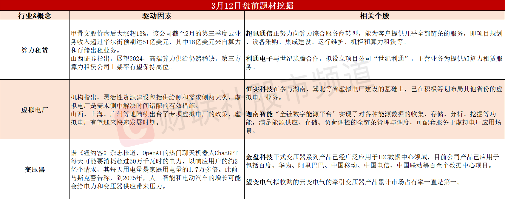 ①高端算力供给稀缺,2024年算力租赁行业有望保持高景气。②电力系统灵活性调节资源需求提升,虚拟电厂有望迎来快速发展期。③AI发展给电力供应带来压力,国产变压器出海空间广阔。
