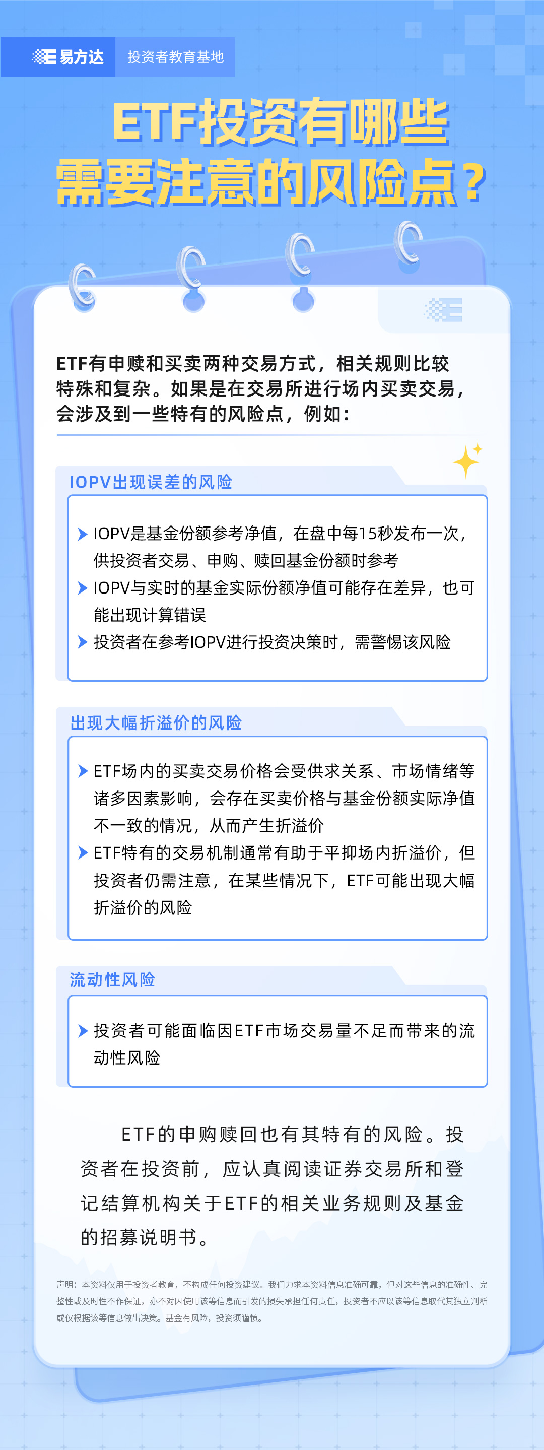 基金E课堂 -指数知识(二十四) | ETF投资有哪些需要注意的风险点?