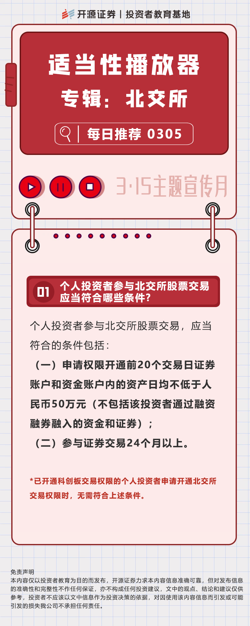 【3·15主题宣传月】适当性播放器丨专辑:北交所 3月5日推荐好歌