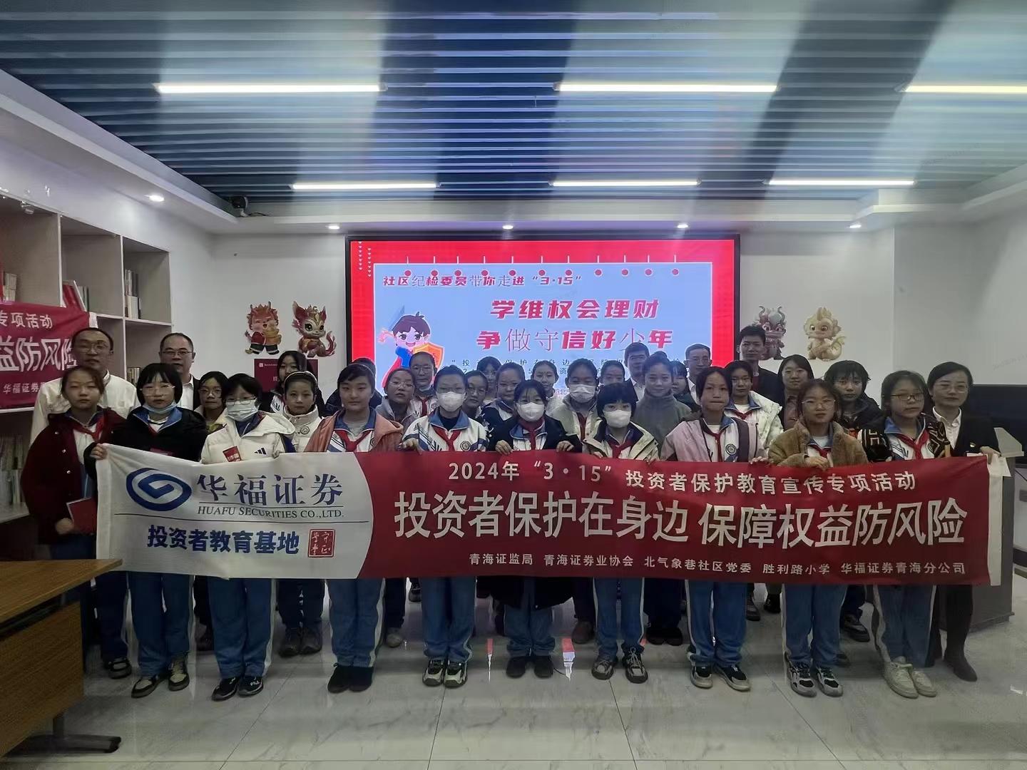 为全面落实党的二十大精神和中央金融工作会议、中央经济工作会议部署要求,切实提升消费者金融素养及风险防范意识引导消费者树立理性投资、价值投资观念,3月14日,华福证券青海分公司以党建引领为先导,联合北气象巷社区党委、胜利路小学开展“投资者保护在身边,保障权益防风险”主题投资者教育宣传专项活动暨“学维权 会理财,争做守信好少年”互动知识讲座。西关大街街道司法所、青海证监局、青海证券业协会、招商银行西宁分行西宁城西支行党支部、中国工商银行股份有限公司青海省分行授信审批部党支部等多家单位及学生共60余人莅临参加本次活动。