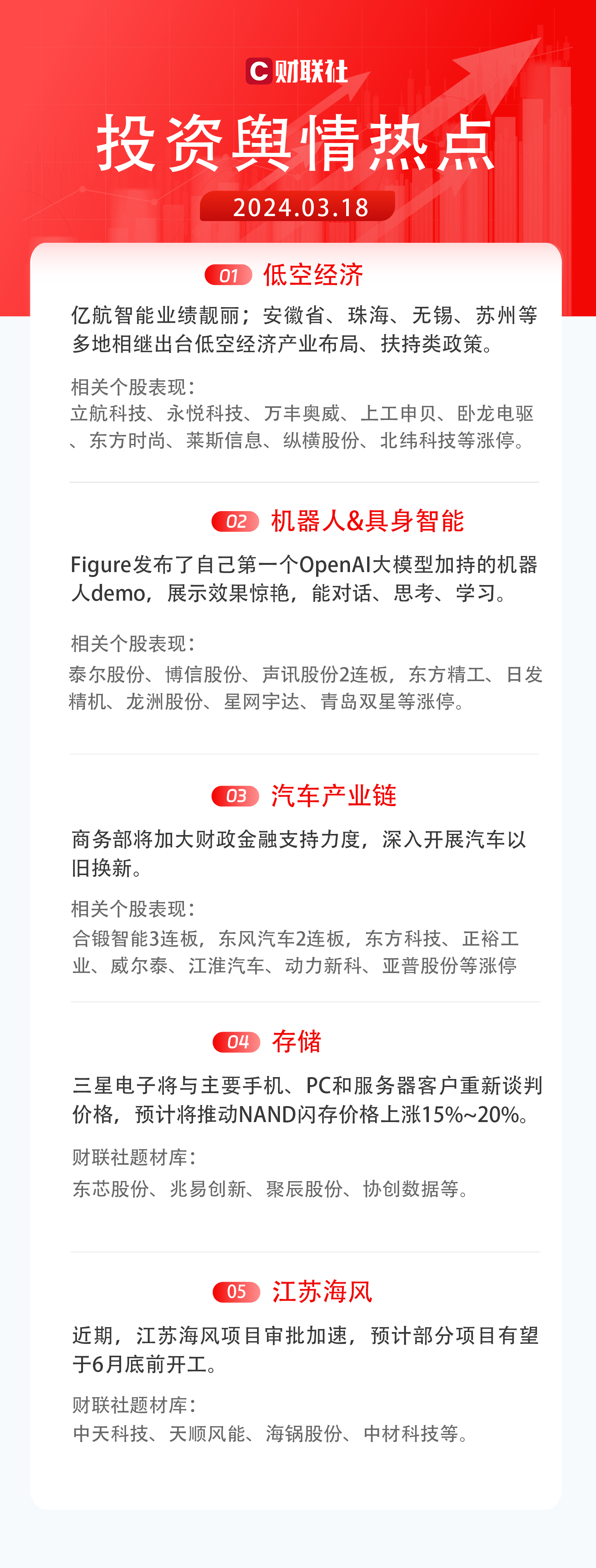 1)低空经济:亿航智能业绩靓丽;安徽省、珠海、无锡、苏州等多地相继出台低空经济产业布局、扶持类政策。