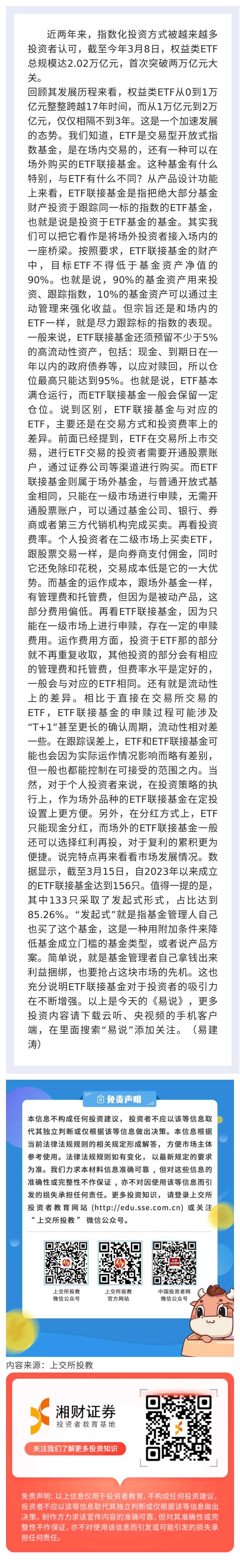 【3·15投资者保护专项活动|上交所投教】媒体视角 | 央广经济之声《易说:ETF联接基金有何特点?》