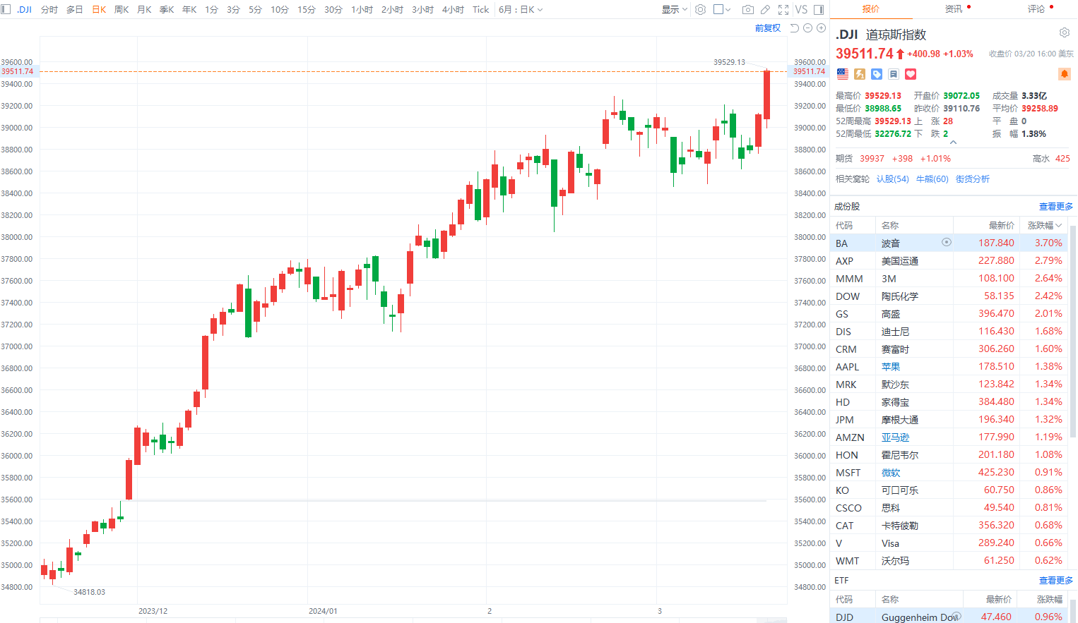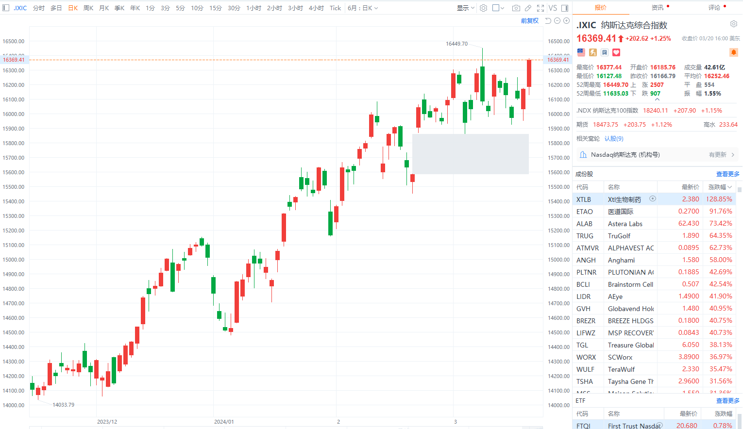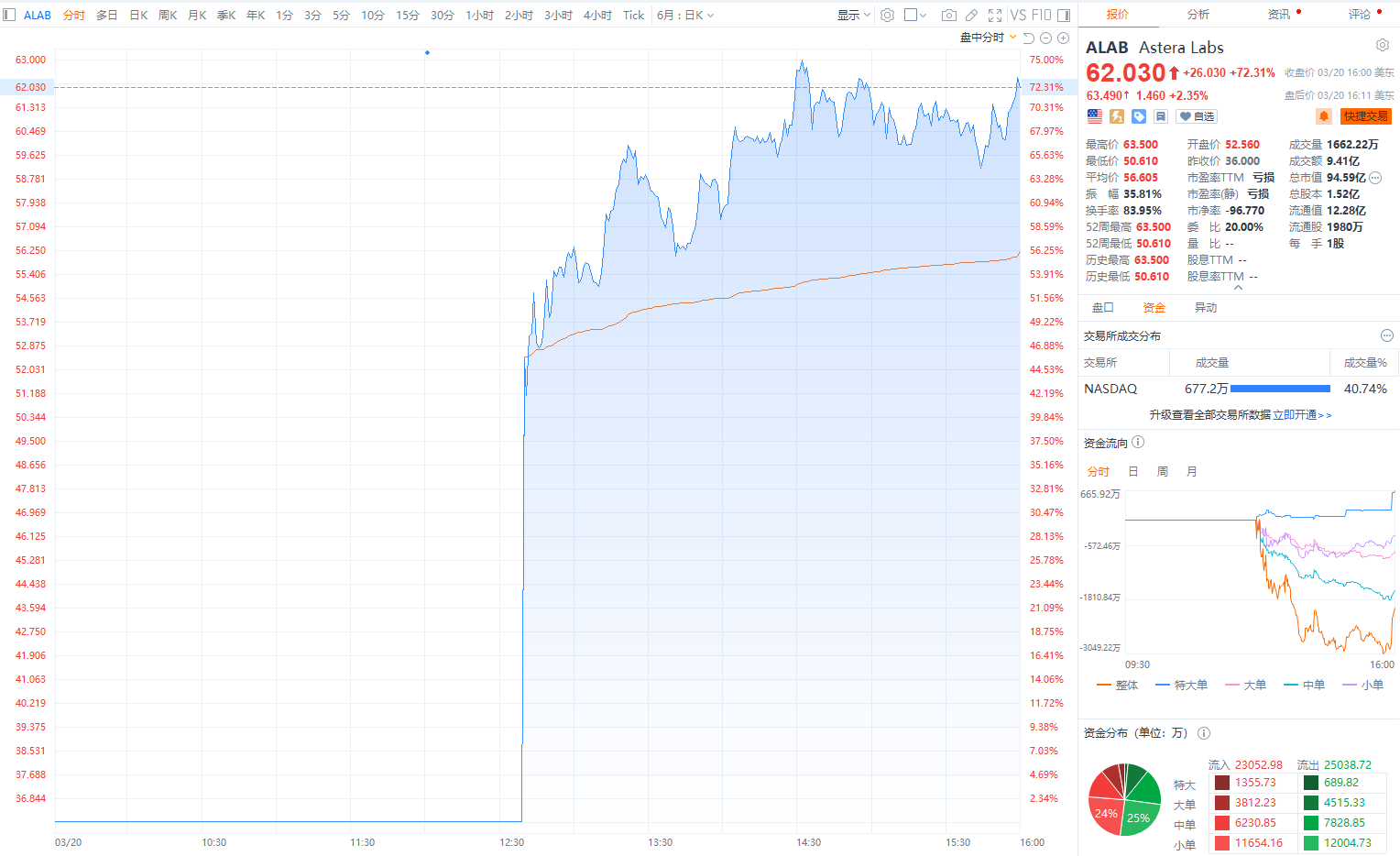 财联社3月21日电,美联储将联邦基金利率目标区间维持在5.25%至5.5%之间不变。美股三大指数集体收涨,纳指涨1.25%,道指涨1.03%,标普500指数涨0.89%;均创历史收盘新高。大型科技股普涨,特斯拉涨超2%,苹果、英伟达、谷歌、亚马逊、Meta涨超1%,微软、英特尔小幅上涨。AI基础设施独角兽Astera Labs美国IPO首日大涨超72%;慧悦财经ADR美国IPO首日破发,大跌超17%,盘中一度涨近100%。