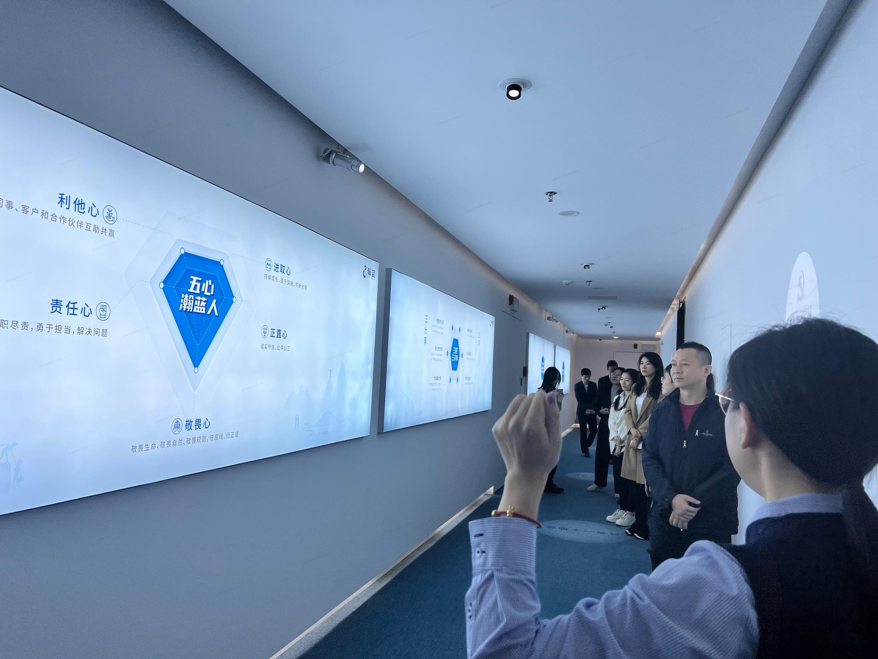 参观期间,瀚蓝科技展厅工作人员带领投资者参观展厅,详细介绍了公司发展历程、公司愿景,并一一介绍了固废处理、能源、供水、排水、污水处理系统的运作。展厅负责人讲解并展示了瀚蓝排水智慧管理平台、工业大脑应用工厂、垃圾焚烧数字孪生大屏在实践中的数字化运用。通过全方位数字化的展示,投资者对瀚蓝环境有了更为清晰、全面的了解。