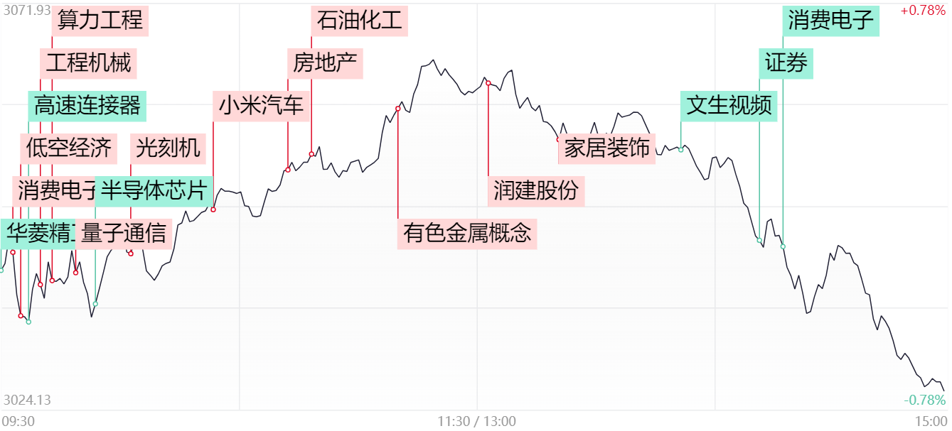 财联社3月26日电,上个交易日,三大指数集体低开,AI应用端、铜缆高速连接等板块早盘大幅回调,尽管工程机械、有色、石油等顺周期板块一度拉升股指翻红,但午后AI应用端持续退潮,指数尾盘加速探底,创业板指收跌近2%并跌破半年线。沪深两市成交额10435亿,较上周五缩量538亿。1)光刻机概念盘中异动拉升,刺激半导体设备、材料方向局部活跃,翔港科技、康达新材、京华激光、东方嘉盛、大唐电信等涨停,奥普光电、冠石科技、新莱应材、富乐德等涨幅靠前。消息面上,路透社称,即将卸任的荷兰首相吕特时隔五年将于本周访华,此行将与中方商讨荷兰光刻机巨头阿斯麦(ASML)是否可以继续为中国客户提供售后服务等问题。2)光伏板块等新能源赛道局部异动,石英股份涨停,欧晶科技午后拉升一度逼近涨停,金盘科技、聚和材料、科林电气、钧达股份等冲高。石英股份发布的2023年年报净利润同比增近3.8倍,拟向全体股东每10股派发现金红利57元(含税)并转增5股。3)设备更新局部活跃态势依旧,人气股艾艾精工反包涨停走出15天14板,数控机床股青海华鼎3连板,工程机械板块建设机械涨停,拓山重工、徐工机械、三一重工、恒立液压等涨幅靠前。发改委表示,在工业、农业、建筑、交通、教育、文旅、医疗等7大领域推动设备更新,有望形成年规模5万亿以上的巨大市场。4)石油、有色等资源股盘中展开凌厉拉升,石油股准油股份、贝肯能源涨停,潜能恒信涨超10%。有色板块盛达资源一度涨停,洛阳钼业、中孚实业、中国铝业、云铝股份等涨幅靠前。中信建投近日发布的研究报告指出,美联储预计在年中降息的预期增强,这将推动工业金属价格的上涨势头。