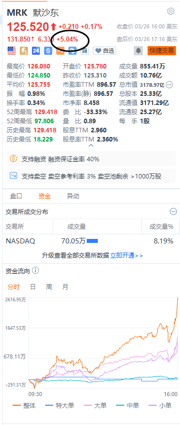 默沙东美股盘后涨超5%