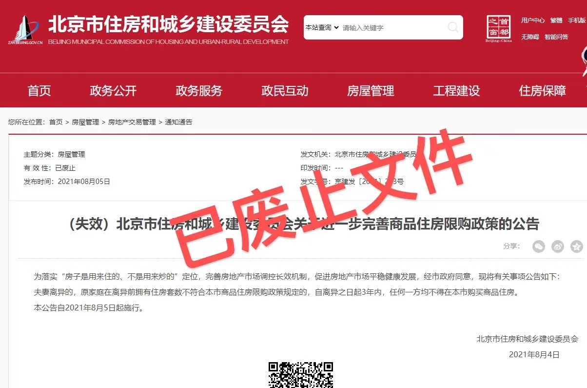 “离异3年内不得京内购房”被废止?北京市住建委:消息属实