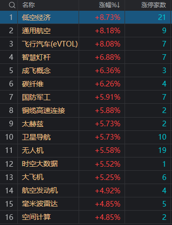 财联社3月28日电,市场全天冲高回落,三大指数均收涨。盘面上,低空经济板块持续爆发,深城交、万丰奥威、立航科技等近40股涨停或涨超10%。低空经济大涨也带动了智慧灯杆、碳纤维、无人机、卫星导航等其他相关板块走强,崧盛股份、英飞拓、神剑股份等涨停。机器人概念股盘中活跃,南方精工、五洲新春等涨停。AI概念股展开反弹,算力方向领涨,浪潮信息、城地香江涨停。消费电子概念股震荡走强,中京电子、力鼎光电等涨停。下跌方面,银行股陷入调整,光大银行跌超5%。总体上个股涨多跌少,全市场超4500只个股上涨。沪深两市今日成交额9322亿,较上个交易日放量434亿。板块方面,低空经济、智慧灯杆、铜缆高速连接、卫星导航等板块涨幅居前,银行、猪肉等少数板块下跌。截至收盘,沪指涨0.59%,深成指涨1.31%,创业板指涨0.95%。北向资金全天净买入23.35亿,其中沪股通净买入25.59亿元,深股通净卖出2.25亿元。