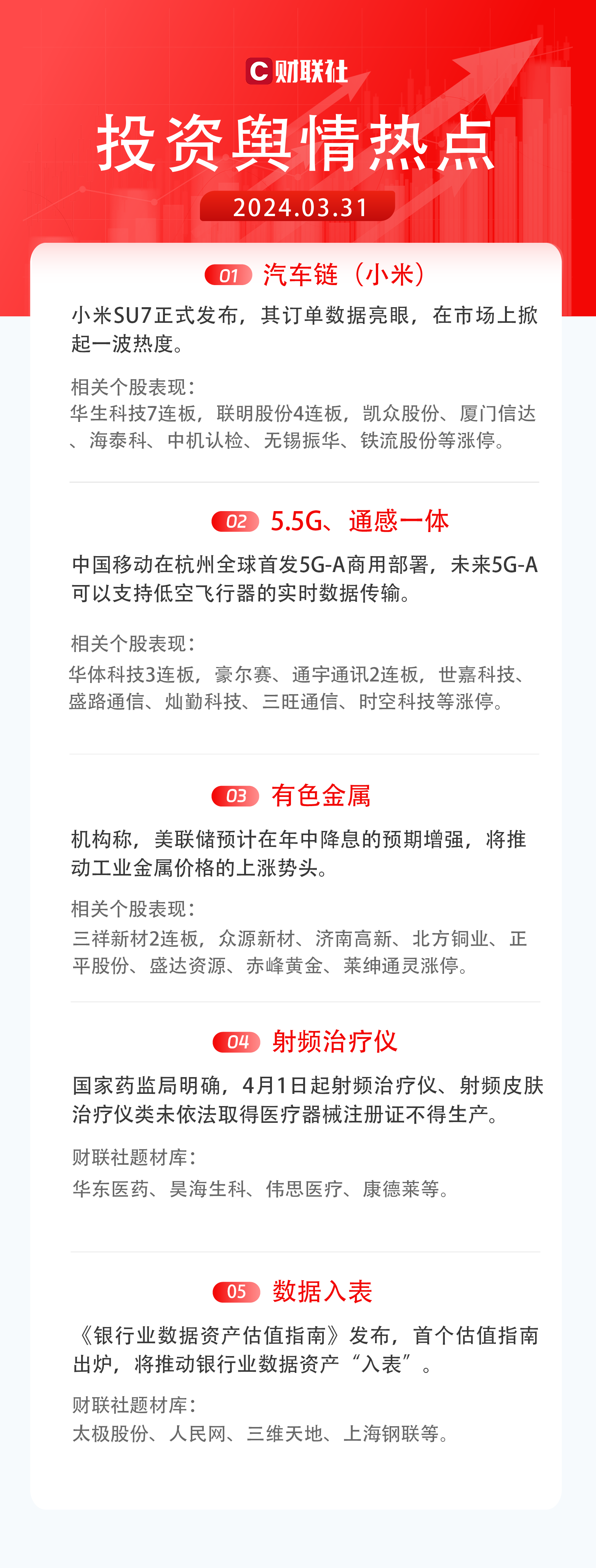 1)汽车链(小米):小米SU7正式发布,其订单数据亮眼,在市场上掀起一波热度。