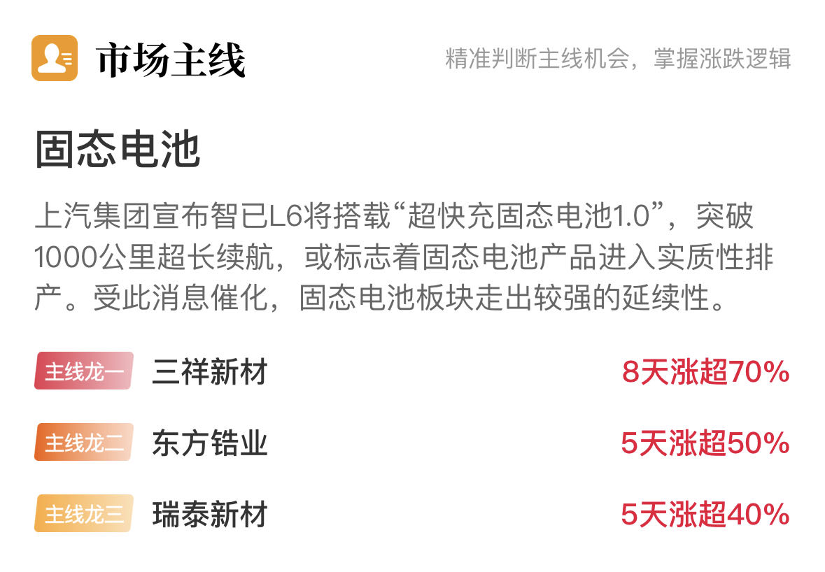 市场主线:固态电池板块冲高回落 留意午后资金回流AI、低空经济的可能
