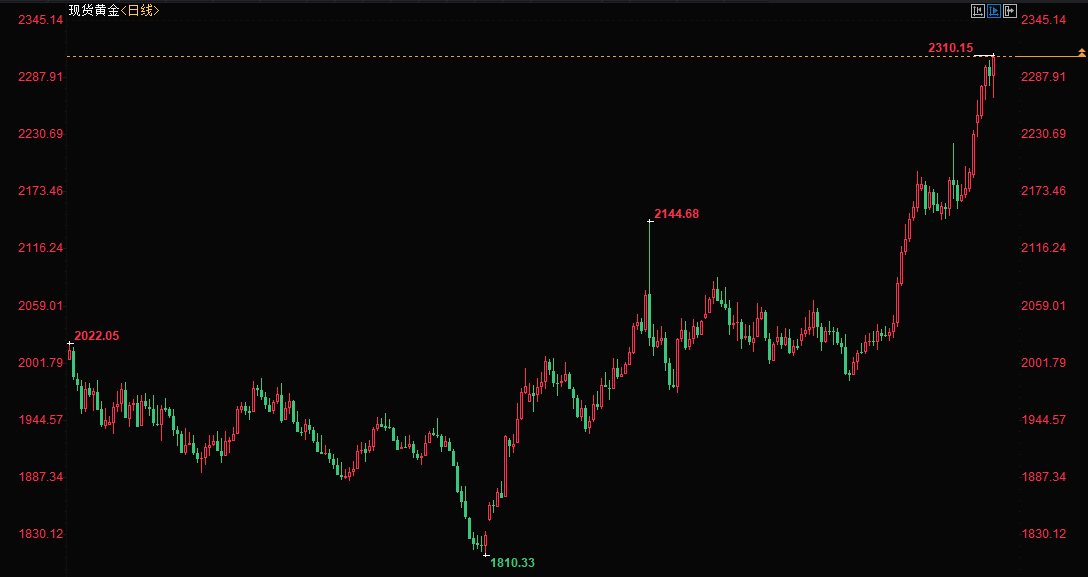 财联社4月5日电,现货黄金站上2310美元/盎司,再创历史新高。