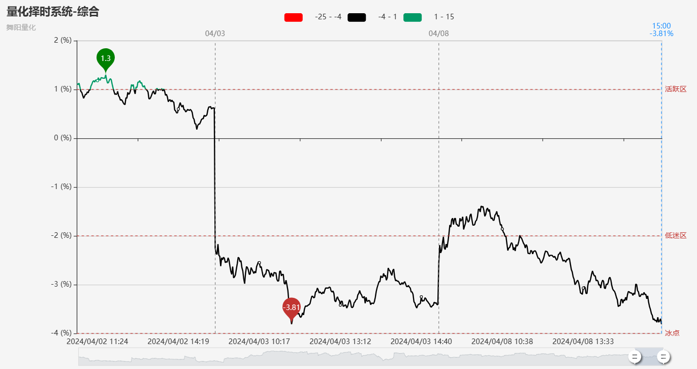 今日市场情绪持续低迷,情绪指标震荡走低再度逼近冰点。