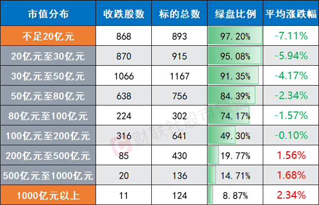 以大为美再现!超九成千亿市值股红盘 20亿以下股平均跌超7%